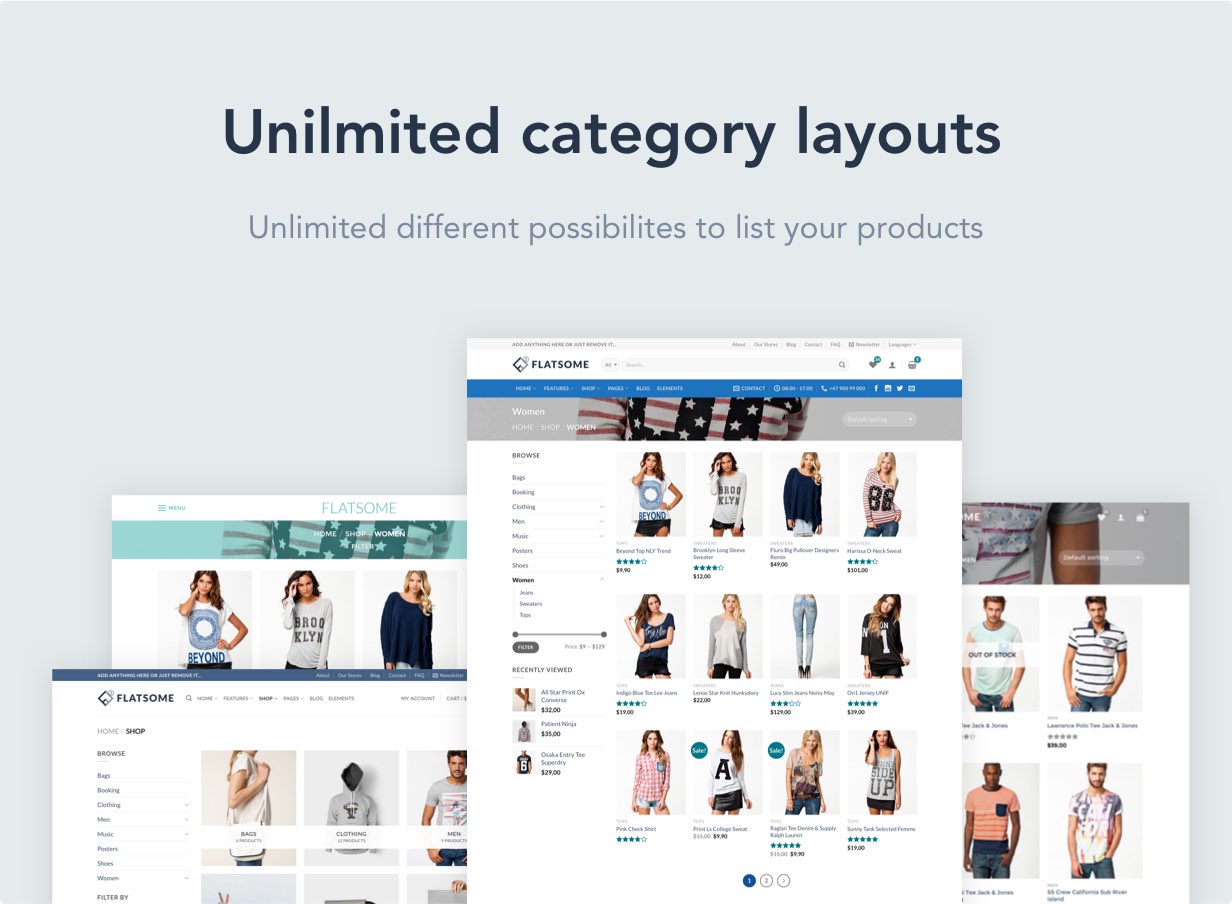 Điểm mạnh của Flatsome là nó tích hợp nhiều tính năng vô cùng thông minh khi kết hợp với Plugin bán hàng Woocommerce, có Page Builder (Trình dựng trang riêng) để sử dụng đa mục đích (Multi – Purpose)